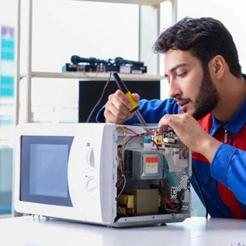 نقوم بفحص دقيق لجميع الدوائر الكهربائية والمكونات الداخلية للميكروويف للتأكد من سلامتها وعدم وجود أي أعطال تؤثر على الأداء.